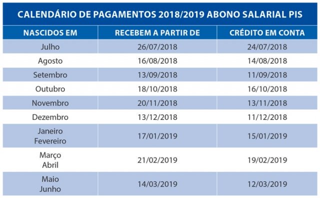 ABONO SALARIAL PIS CALENDÁRIO 2018/2019 COMEÇA A SER PAGO PARA OS NASCIDOS EM NOVEMBRO